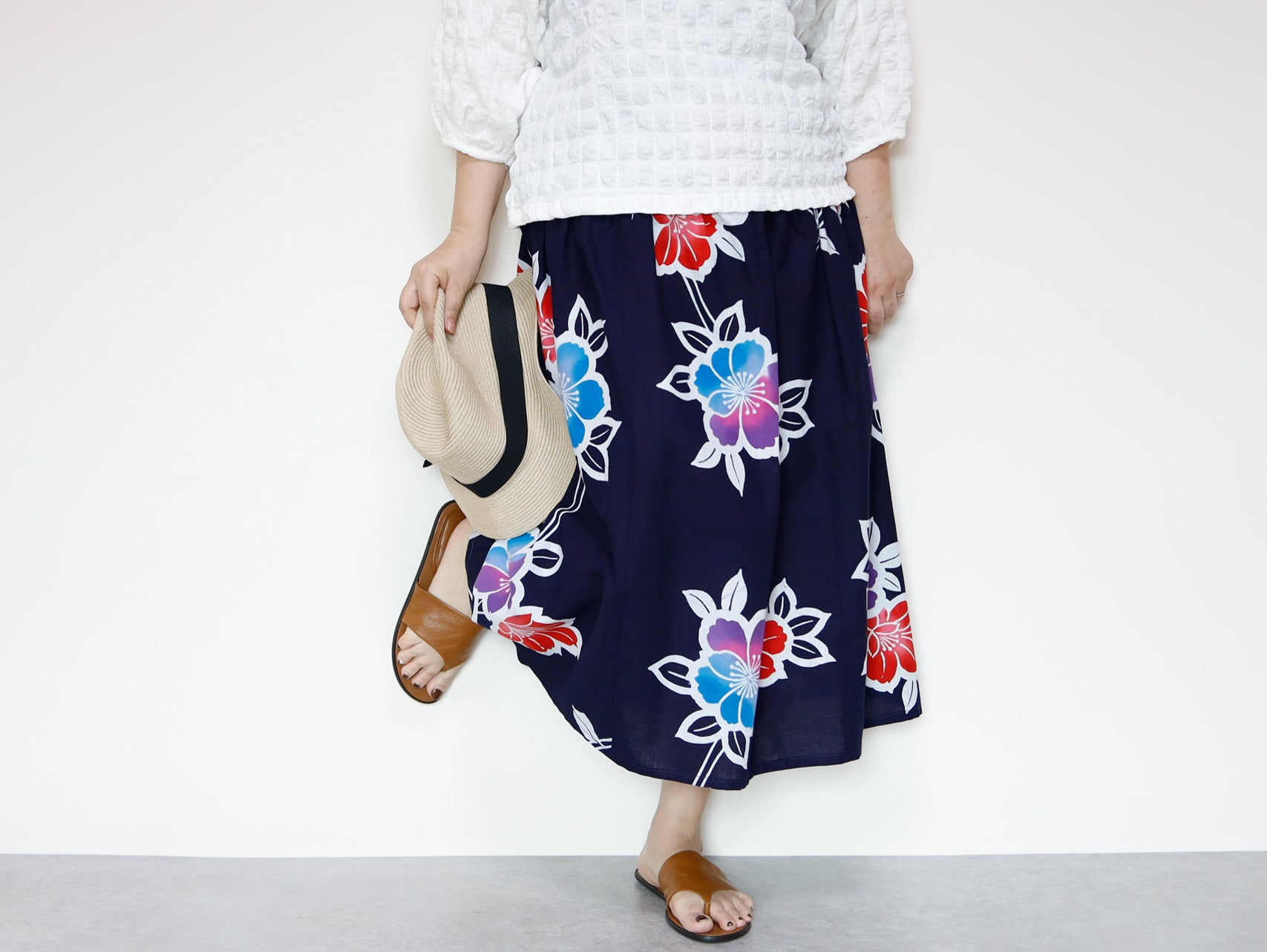 カジュアルなシーンやリゾートスタイルにぴったりで、休日のお出かけや夏祭りなど、さまざまな場面で活躍します。