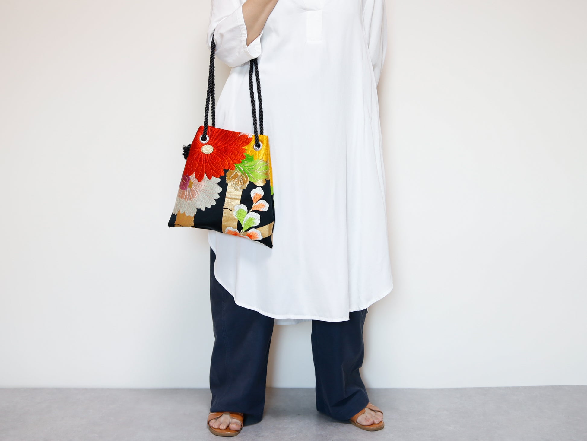 The FUJIYAMA BAG is crafted using vintage kimono obi, a symbol of Japan's traditional beauty. Each bag features a unique pattern from the obi, making every piece one-of-a-kind and a true reflection of individuality.