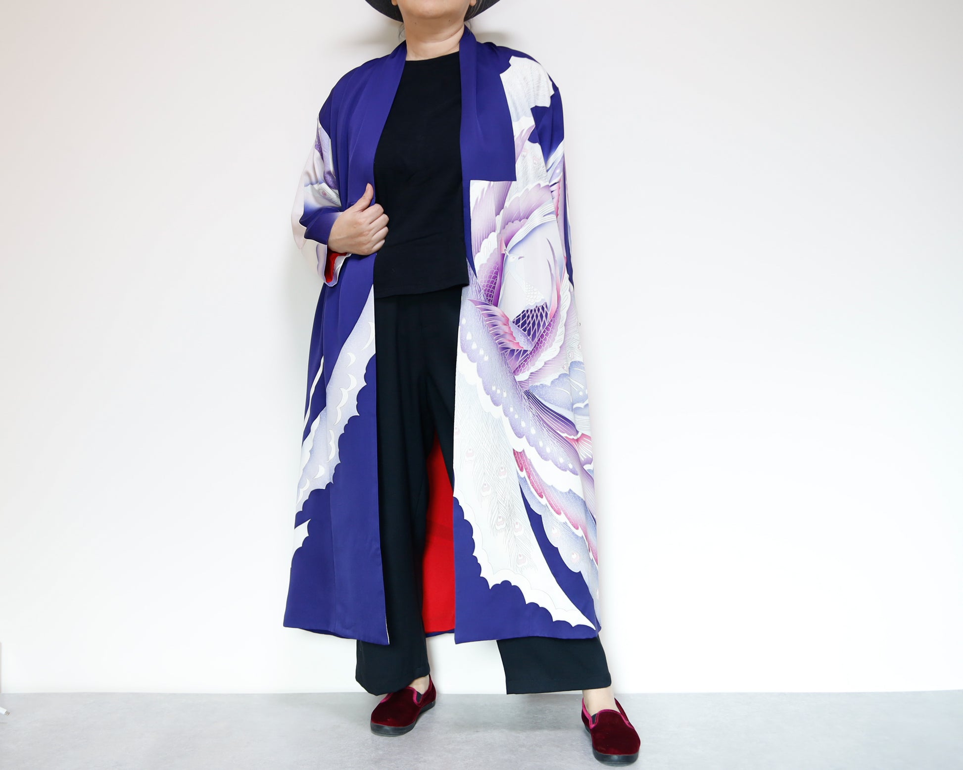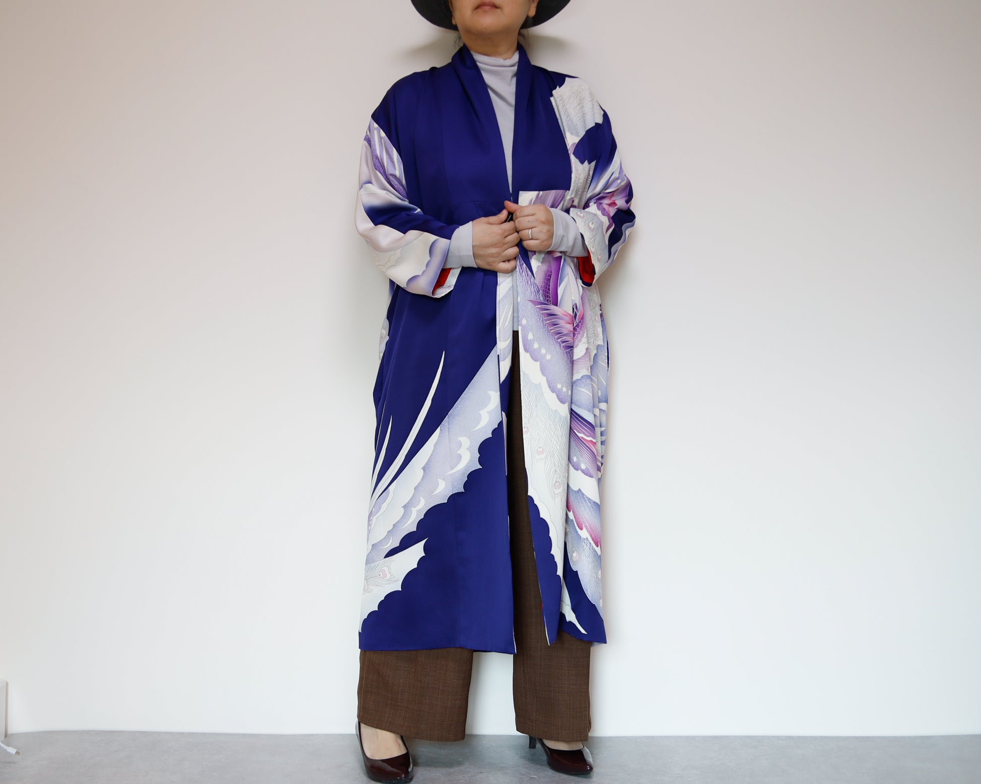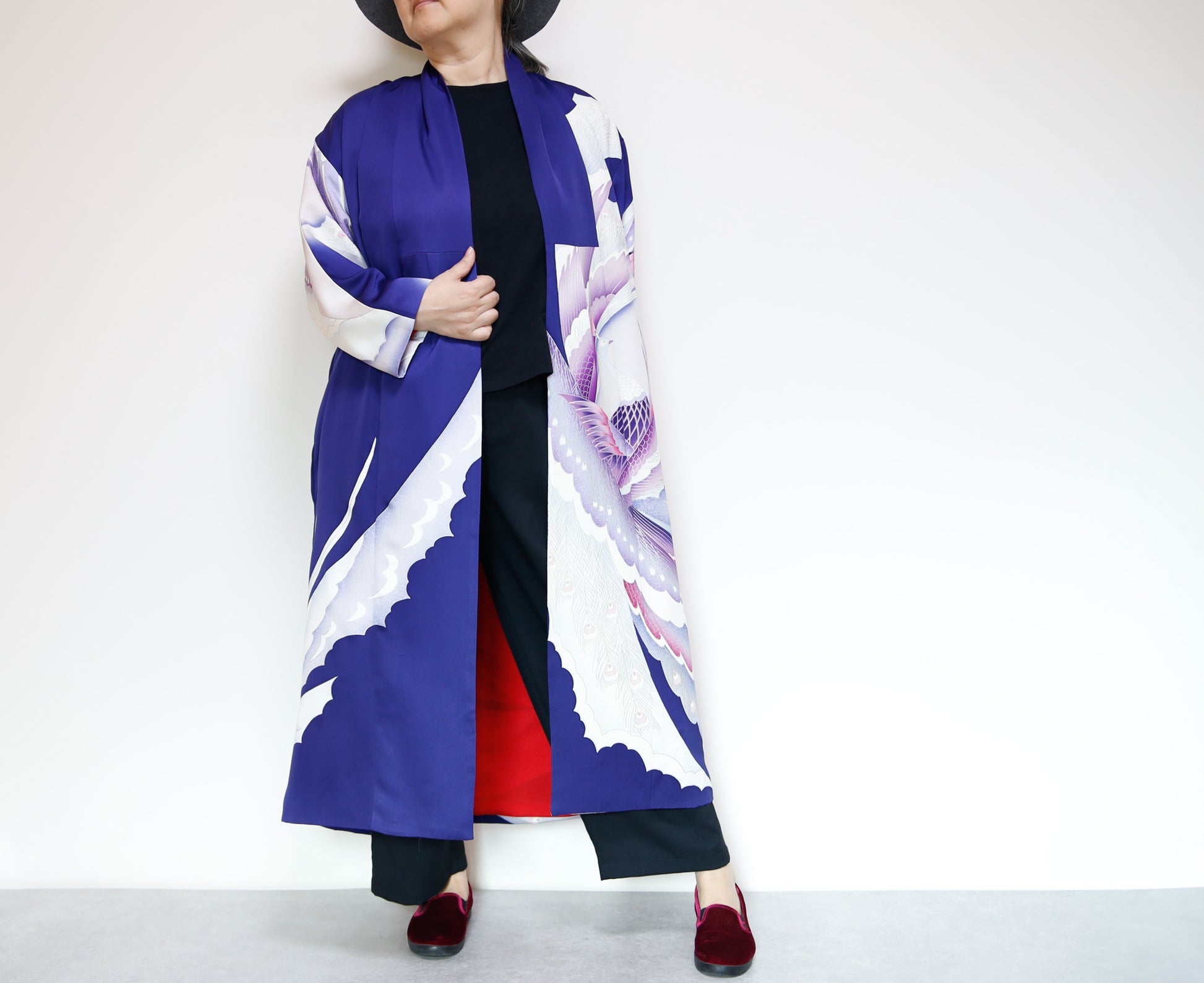 Crafted from traditional vintage kimono fabric, this coat features a unique texture that is one of a kind. No two designs are alike, making it a partner that shares your story.