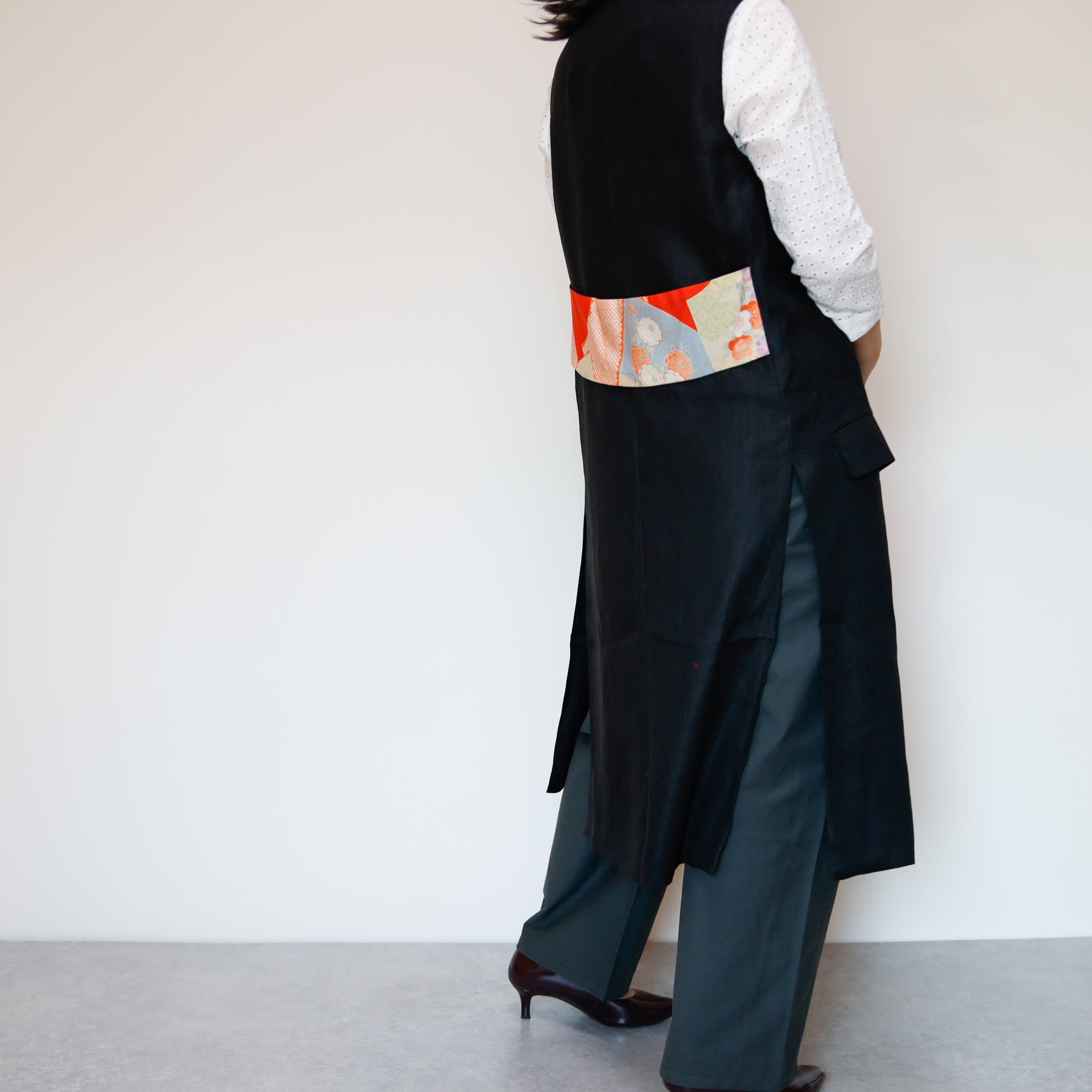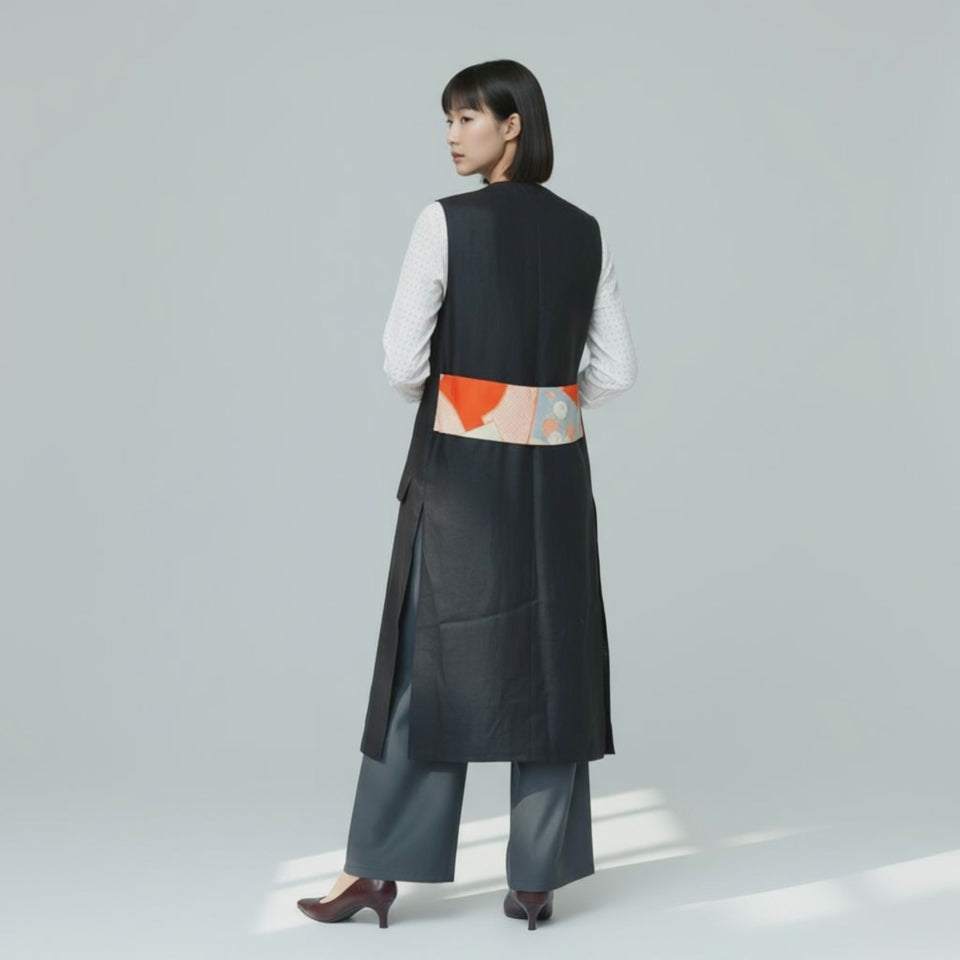This KIMONO gilet is more than just fashion—it's a piece imbued with history and stories. Crafted from vintage kimono fabric cherished across generations, it brings a sense of uniqueness to your wardrobe, infusing daily life with special moments. Each wear allows the history of the kimono to enrich your style, empowering you with confidence and a touch of the extraordinary.